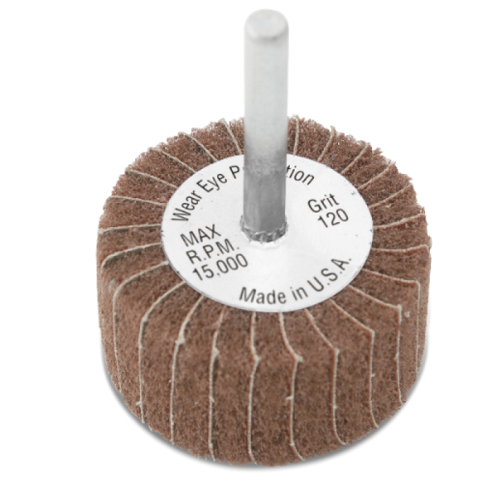 CGW Interleaf Flap Wheel, 2 in Diameter, 1 in Face Width, 80 Grit, Medium Grit Grade, 1/4 in Arbor Thread, Aluminum Oxide Abrasive, 11000 rpm Maximum Speed, Applicable Materials: Aluminum, Ferrous and Non-Ferrous Metals, Stainless Steel
