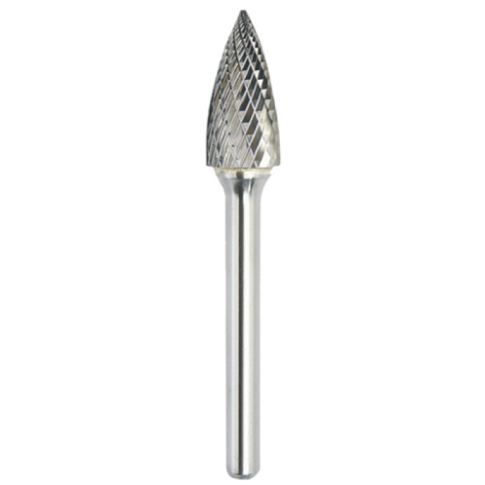 SG-5DC Carbide Burr, Double Cut, Pointed Tree, 1/4" Dia Shank, 1/2" Dia Head, 2-1/4" L