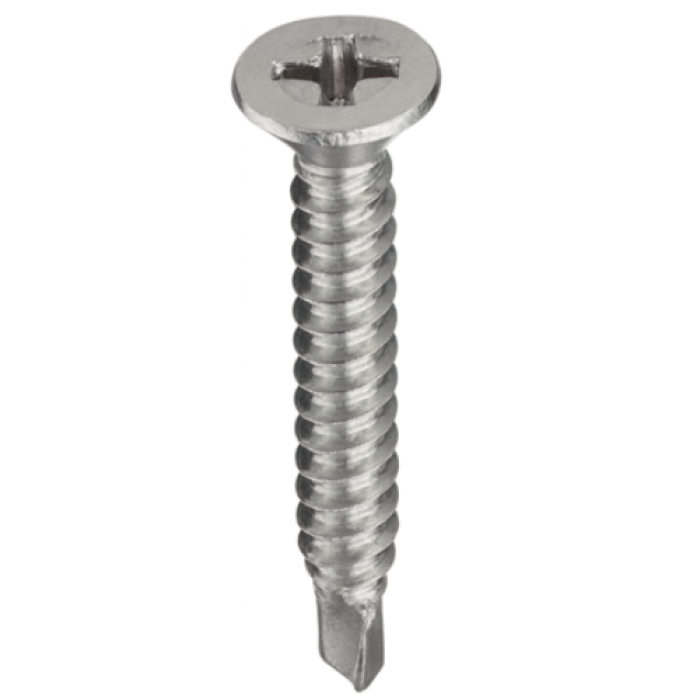 Flat Head Phillips self-drilling screw, (or TEK screw), is similar to a sheet metal screw but it has a drill-shaped point to cut through the substrate to eliminate the need for drilling a pilot hole. Ideal for any project involving light gauge sheet metal, awnings, door and window frames, gutters, sheds.