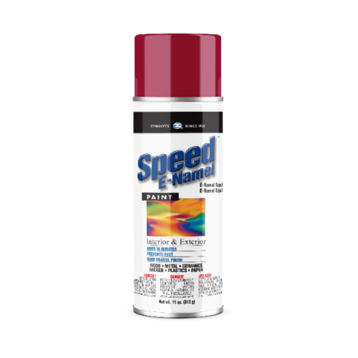 Zynolyte® Speed E-Namel™ Enamel Paint, 11 oz Net Content, Aerosol Can Container, Rich Red, Composition: 15 to 40% Acetone, 15 to 40% Hydrocarbon Propellant, 10 to 30% Aliphatic Petroleum Distillates, 1 to 5% Dipropylene Glycol Methyl Ether, 1 to 5% Aliphatic Hydrocarbon, 15 min Dry Time, 3 hr Before, 72 hr After Recoating Time, 60 to 80 deg F, Density: 5.98 lb/gal, 0.72 Specific Gravity, Interior/Exterior, 13 sq-ft Coverage Area
